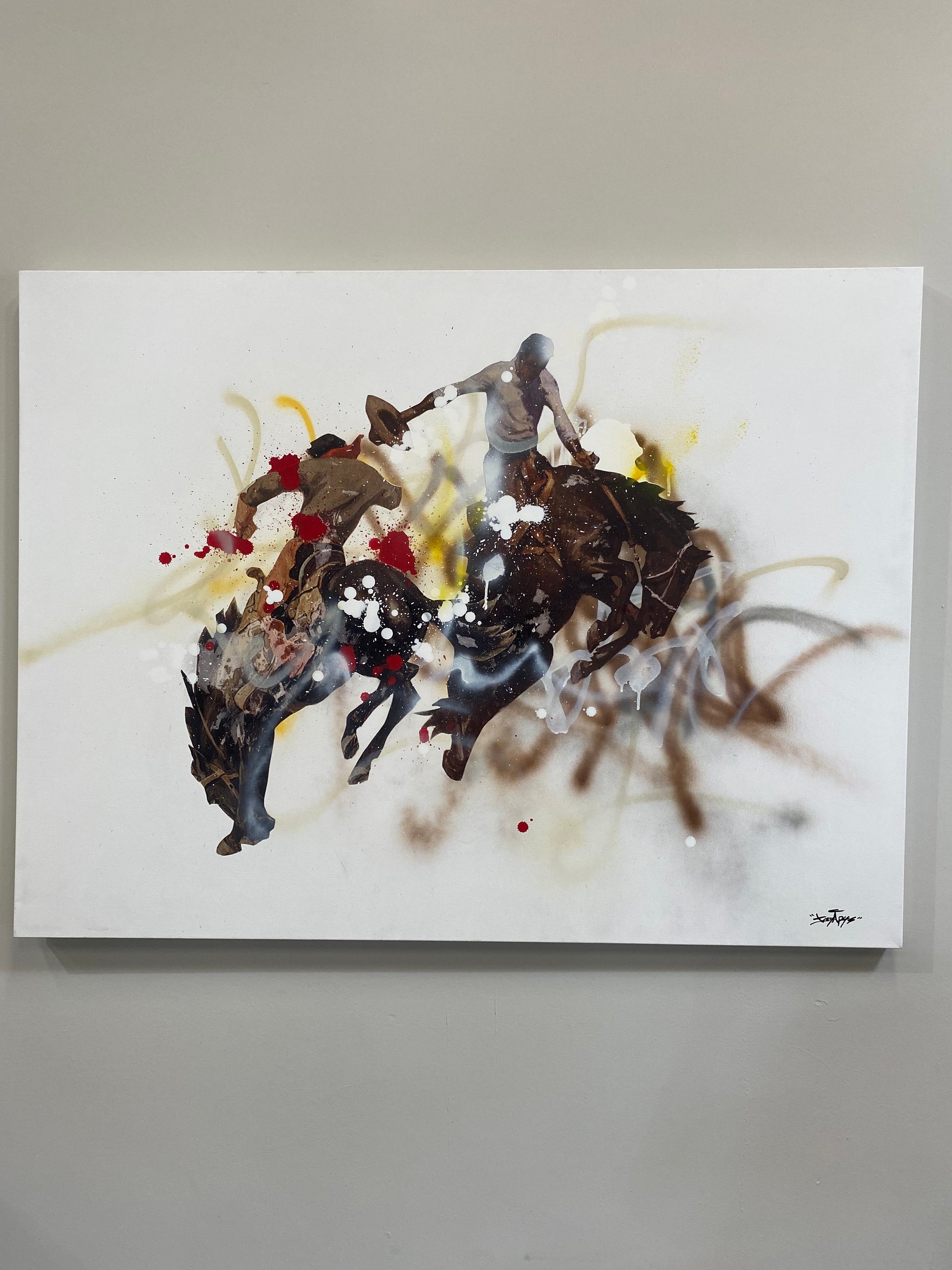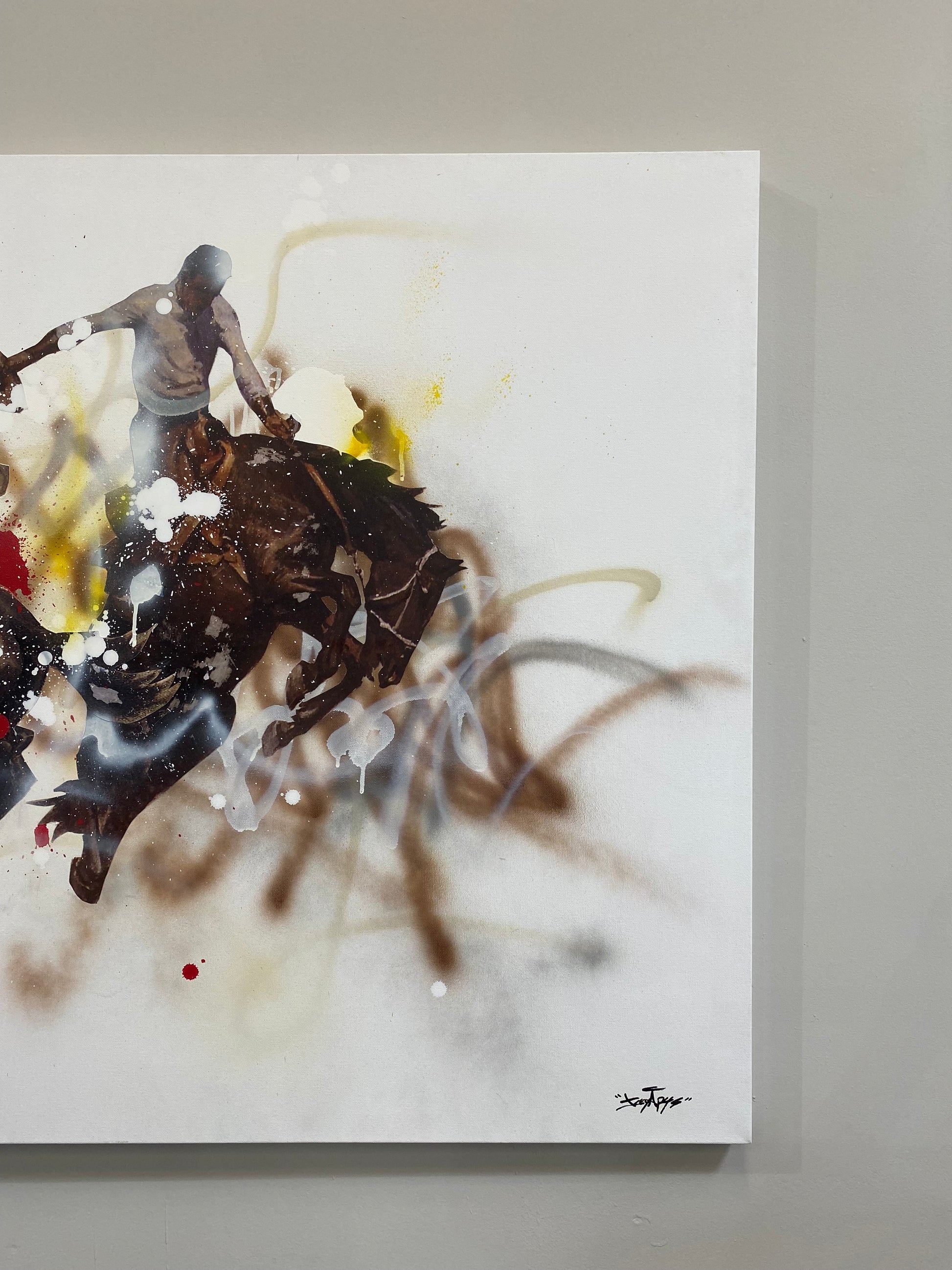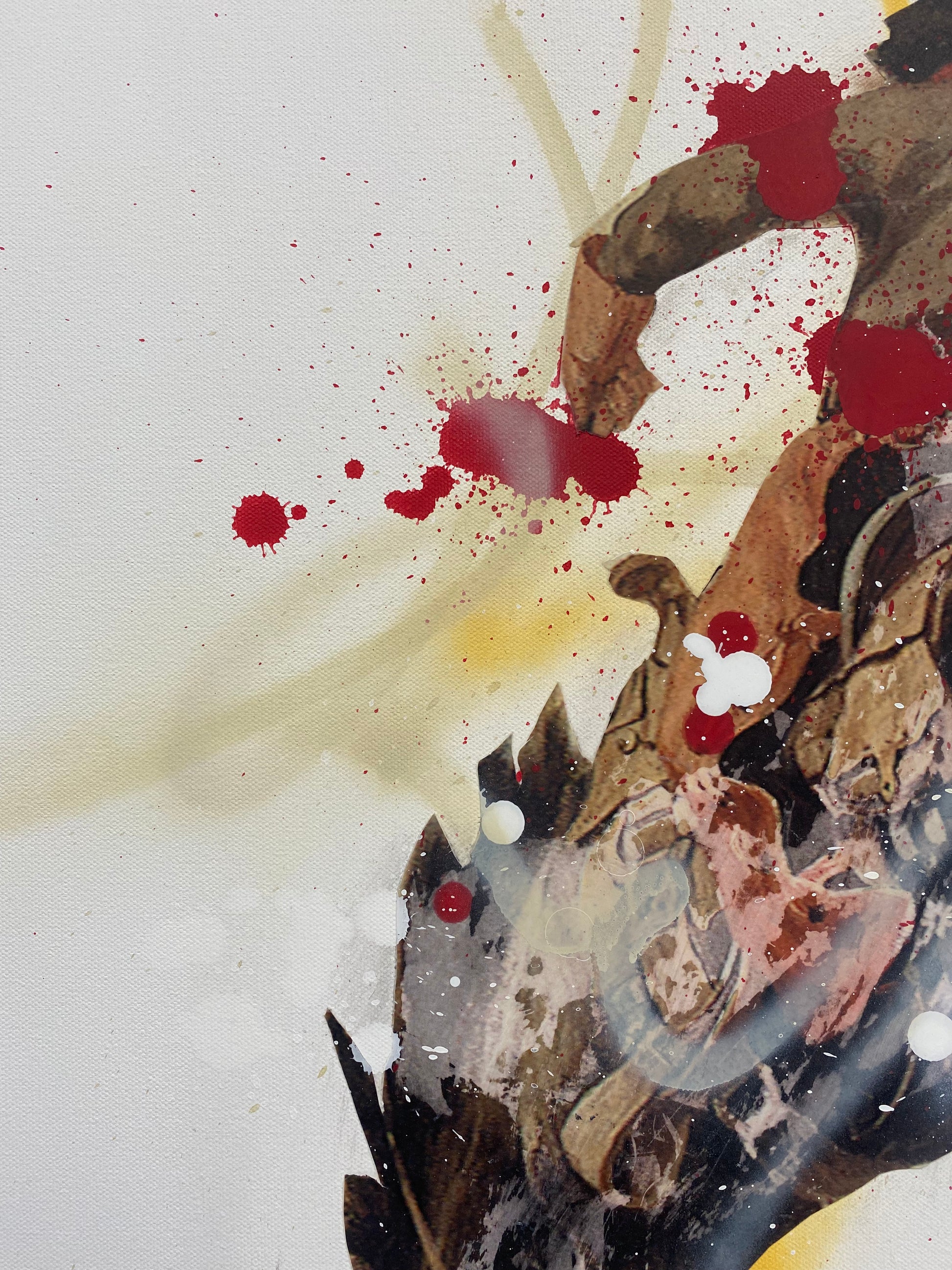 - Acrylic, collage and spray paint on premium canvas